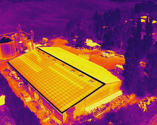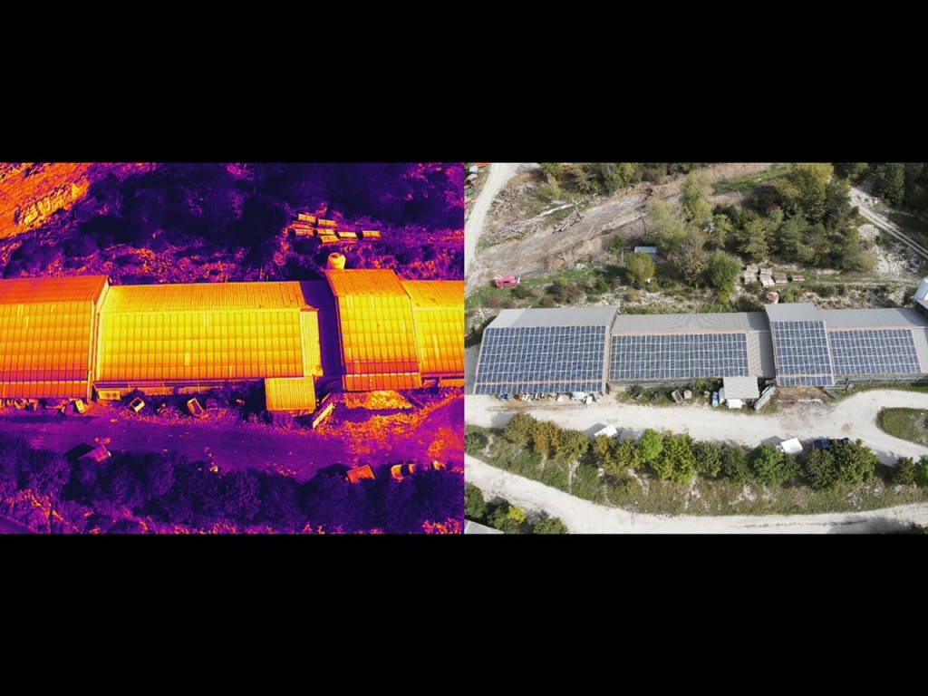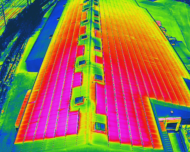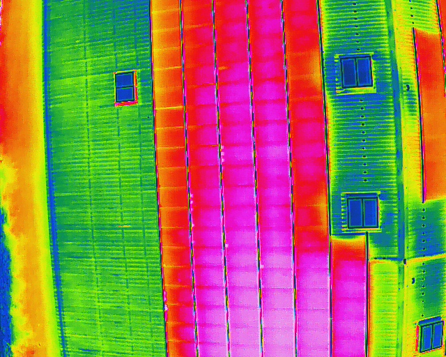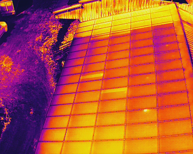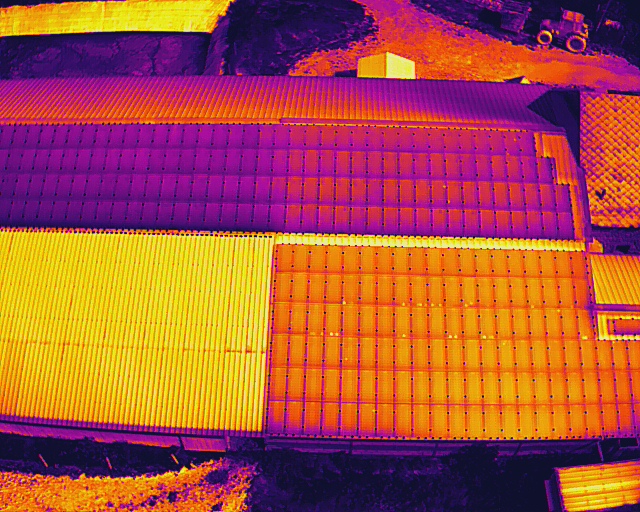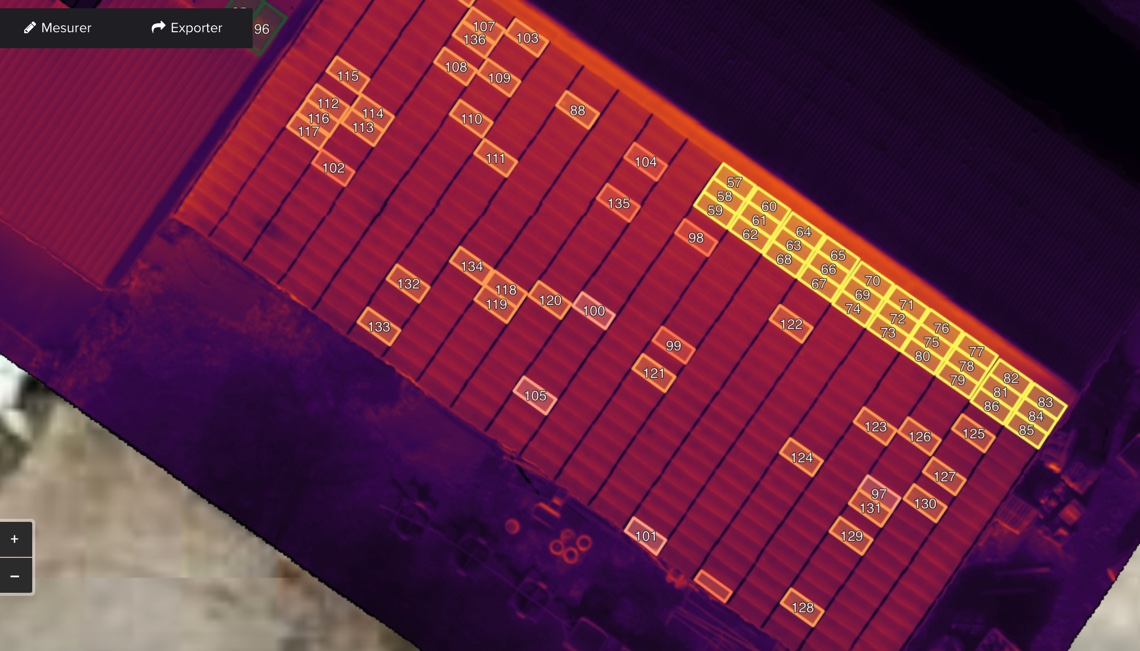 Notre drone réalise une cartographie des toitures en vol autonome, (il est programmé avant le vol pour acquérir des images sur une zone précise. Des images visibles et thermiques sont captées. Nous interprétons ainsi les thermographies avec un logiciel dédié à l’analyse des images thermiques. Les anomalies sont repérées et répertoriées de façon à pouvoir engager les actions adaptées pour améliorer la productivité électrique des sites.