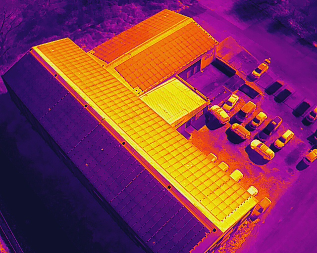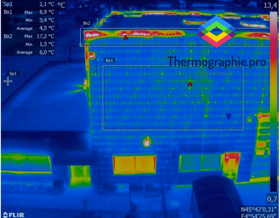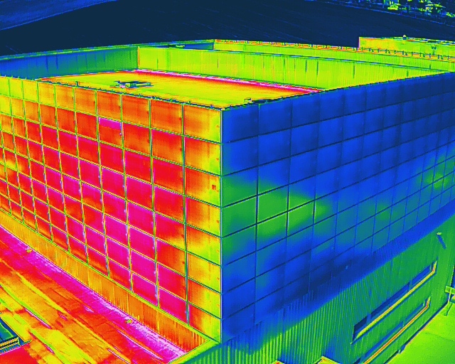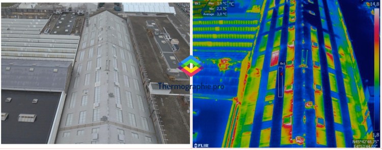Thermographie par drone, un exemple d’une étude en déperdition d’énergie sur un bâtiment public du Grand Lyon. Visualiser dans l’infrarouge la signature thermique d’un bâtiment afin de détecter ses défaillances thermiques